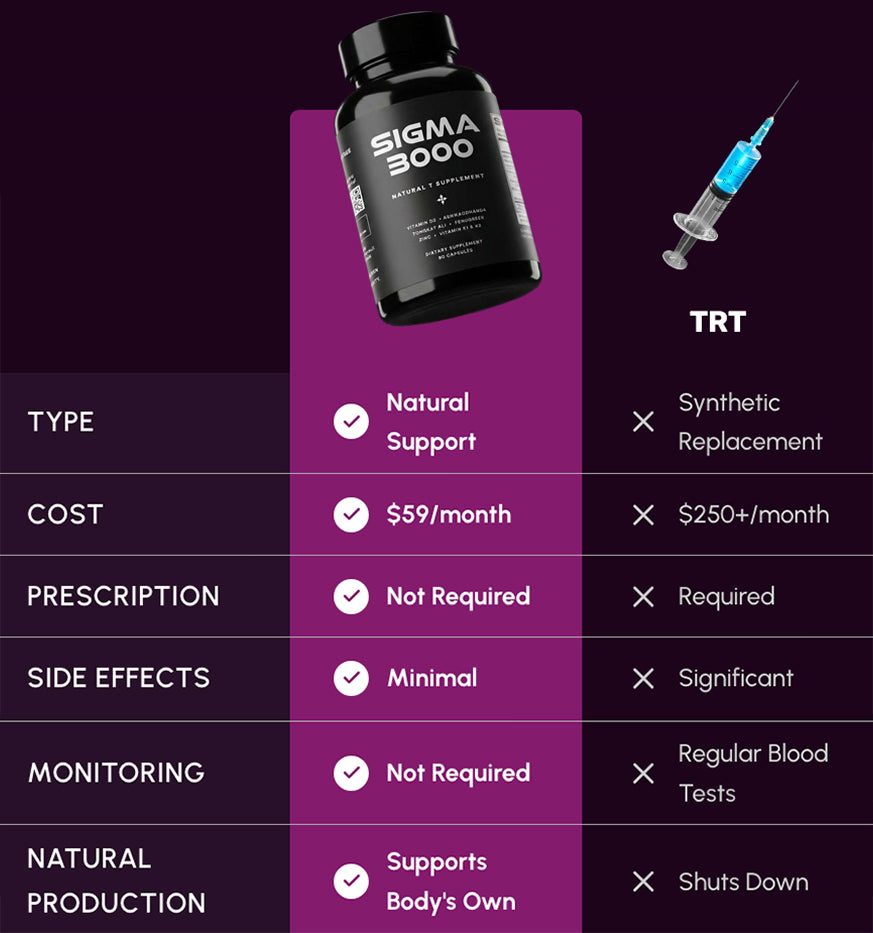 The solution: Sigma 3000 is formulated to reignite your natural testosterone levels—restoring strength, stamina, and clarity so you can perform at your peak again.